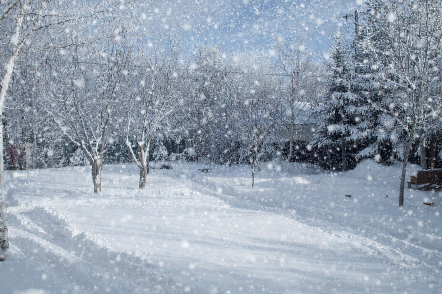 Yet into our yard only measured flakes fell,